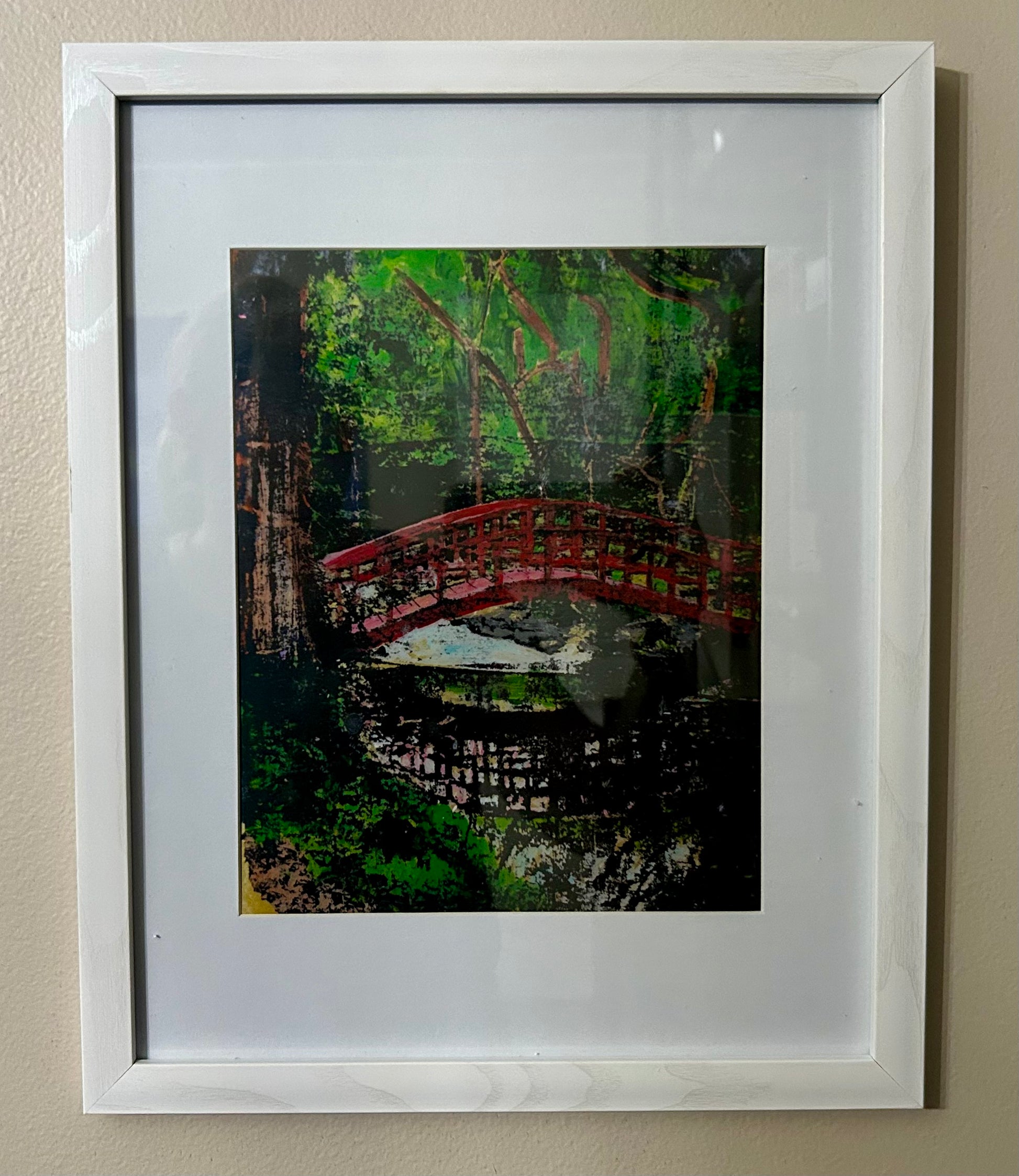 Cranbrook Japanese Bridge, Cranbrook Gardens - 8x10 Framed Gelli Print (not original)